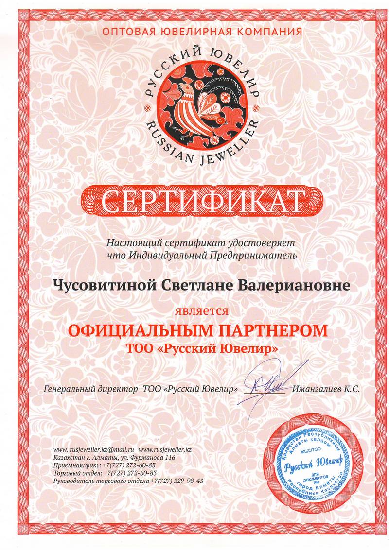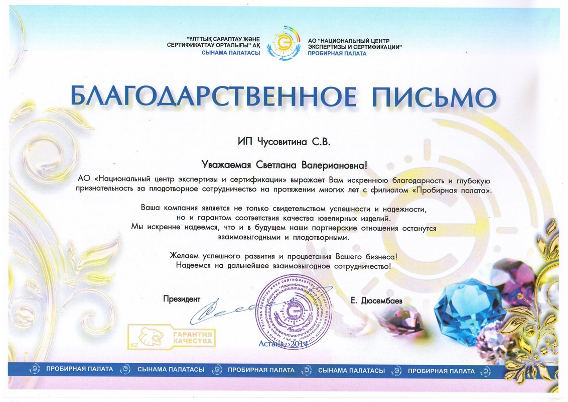 Вы получаете заключение пробирной палаты РК (с соответствующим клеймом на изделии как гарантию соответствия заявленной пробе).